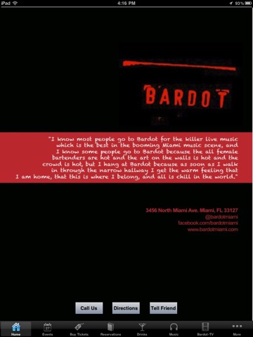 Bardot is an intimate live music venue located in Miami Design and Art District in Wynwood. A small living room setting mixed with state of the art sound make it ideal for artists to perform and enthusiasts to let loose.