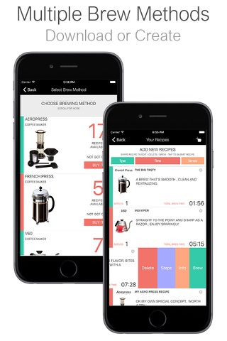 Nice feature for people that dont like to play around. I like to try new recipes and methods and also my own recipes. Would be nice if you use this app like a recipe pad that memorizes your steps.for ex. If you could move/change/add your own blocks in the recipe. (Add stirring step for example) and maybe have a timer in each... So in the end it memorizes it and you got your own recipe which you can later use again. Cuz I try many different and its easy to get lost after all(this time I used this, total brew time was this blah blah, but the next time is different ect )it would be a nice training tool for baristas cuz for now I just have to use timer plus notes manually....