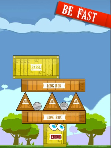 Drop the moving elements in the right moment and stack the boxes, triangles and stones in a stable way.