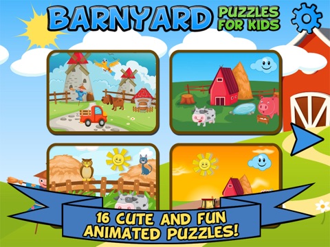 Your kids will love these fully animated farm puzzles! 16 beautiful puzzles that feature interactive animals and farm equipment. Tap the animals to make them move and hear their sound effects. And when the puzzle is completed, enjoy fun celebrations like fireworks, balloons, bubble popping, and more!