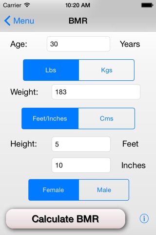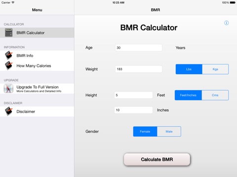 * The app also provides full information on what BMR is and how to calculate it as well as providing advice on the number of calories you should eat a day.
