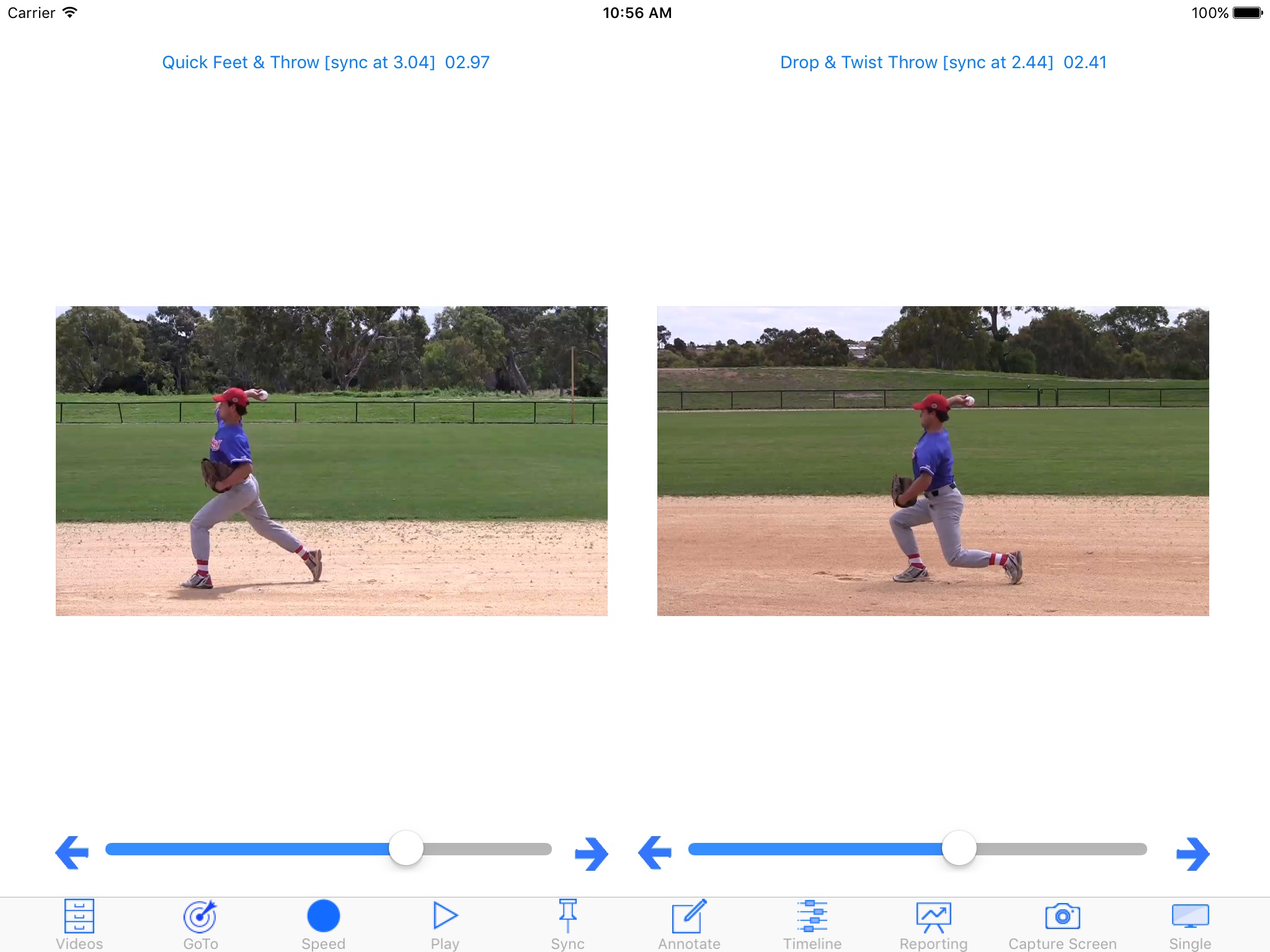 RECORD - Coaches, assistants, teachers or parents can record video and then provide players with technique analysis by replaying their batting, pitching, throwing and fielding action in real time, slow motion and frame by frame. Feedback can be recorded onto a new video or built as a PDF coaches report with key images and annotations.