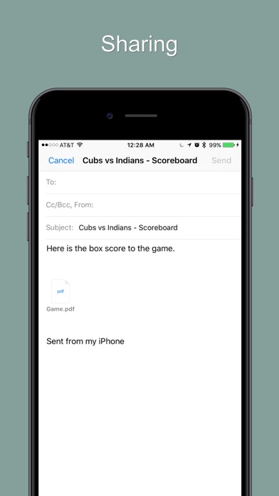 Conveniently, use a full inning scoreboard that keeps track of runs, hits, errors, and even the count!