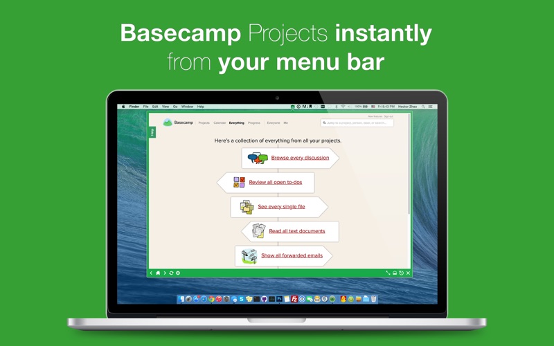 BaseTab for Basecamp: Project Management Tool for Organization allows you to quickly access your Basecamp directly from your Macs menu bar.