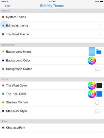 *You can control the background image and color, and execution voice , background animation, text color and shadow, switch interface animation , the number and the order of the main interface of the tab bar to create your learning software.