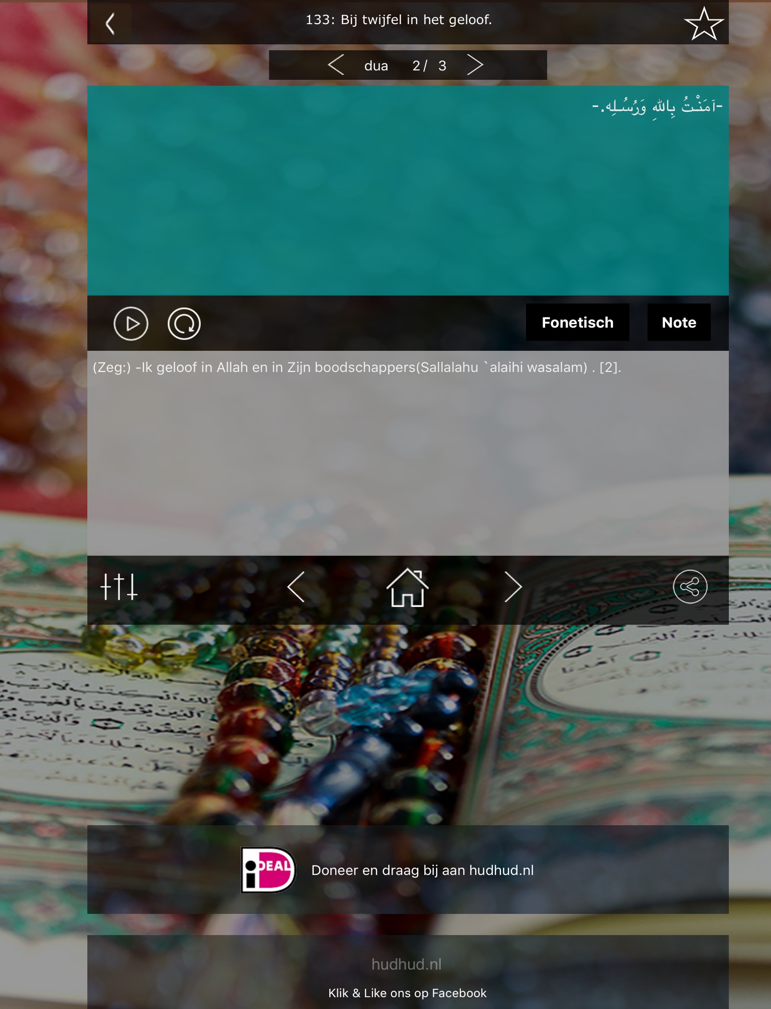 - Alle dua`s in favorieten lijst in 1x afspelen en automatisch laten herhalen.