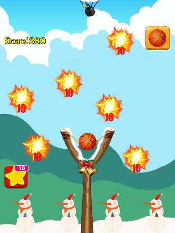 Use your finger to pull back on the rubber band and launch balls. Blast bombs before they reach ground. The farther back you pull, the farther your balls will fly!