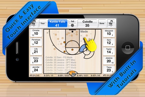 Easily record makes, misses, and shot locations with the unique touch and drag system