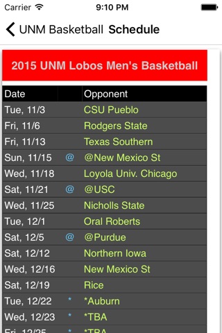 2017 UNM Basketball delivers the information you need to keep up with your favorite team. You can check out the latest news on your team along with the game schedule and roster of players. You can also use the app to purchase tickets, get directions to the arena and find all kinds of information on your team.