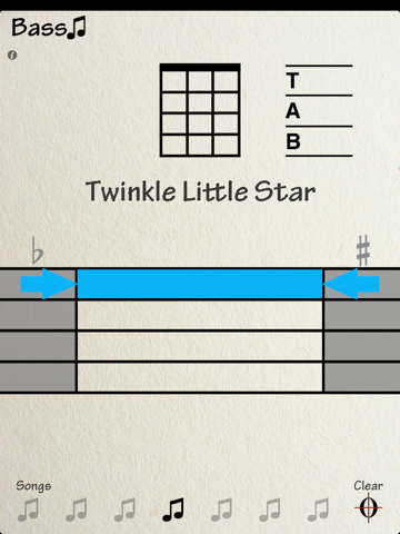 Tap to play freestyle with the staff, or Tap ♫ to follow some simple animated melodies.