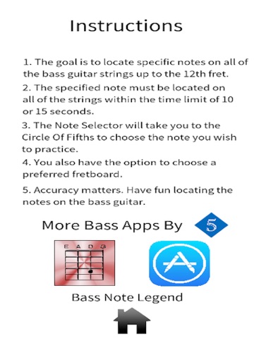 The Bass Note Workout Application provides a bassist with the ability to practice locating notes on the bass guitar. The ultimate goal is to develop a mental mastery of the bass guitars fretboard while away from the instrument.