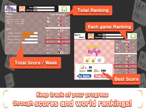 発売を楽しみにしていました。フラッシュカードが読めても、実際のピアノでの音が分からなければ意味がありませんが、このアプリを使えば遊び感覚で学ぶことができ、とても良いアイディアだと思います。ただ、正解の音を弾いても不正解になる不具合があったので、星4つにしました。