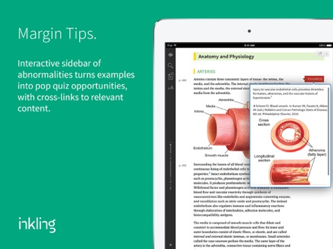 ► Margin Tips: Exclusive to Inkling is an interactive sidebar of abnormalities. Examples are now pop quiz opportunities with cross-links to relevant content.