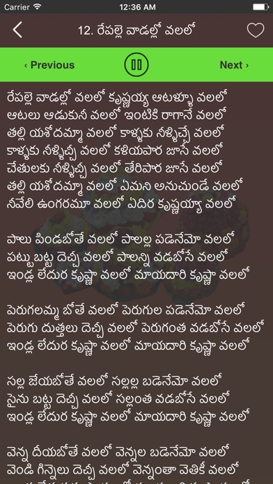 A collection of Bathukamma Songs (paatalu) to celebrate Bathukamma Festival. This app has more than 50 lyrics for different types of Bathukamma songs to sing while playing Bathukamma. Audio songs are provided for some of the lyrics. Favourite songs can be selected to find them quickly. All the songs are written in Telugu language. Celebrate this years bathukamma with the classic Bathukamma Songs form this app.