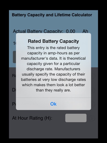 This app is a fill in the blanks calculator. Basically a scam/garbage for $0.99. Screenshots make it look like it has the ability to determine battery capacity. It does not. I didnt pick that up when I read the text description. Thats my mistake.