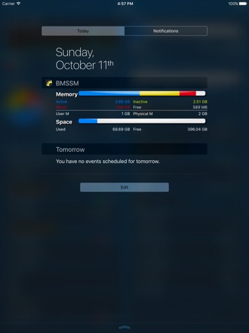 ウィジェットで確認できるのが良かった。ただ、初代iPadminiでのメモリのトータル数がおかしい気がする。あきらかにメーターは半分以上メモリを使っていることを示しているのに、トータルの数値はわずか200MB以下。搭載メモリは500MBなので、半分も使って無いことになる。ちなみに他の2つのアプリでは「その他」が半分ぐらいのメモリを使ってると示してた。iPhone6sではアプリ間で差が見られなかったので、こっちでは正しい気がする。
