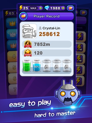 Slide on the screen to change the direction, avoid the danger from monsters, take advantages of tools, collect coins and charges, run as far as you can!