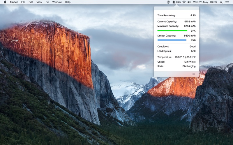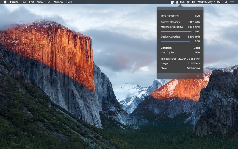 Click on the menu bar item to get detailed information about your battery: