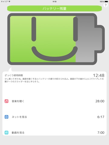 This app displays remaining time by functions, such as listening to music, connecting to the Internet.