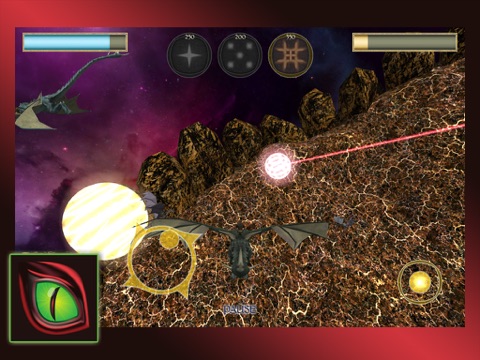 10 Challenging Levels of Battling Dragons and Dragon Riders while each level you must destroy Electric Orbs in Space.