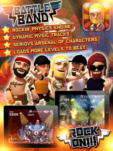 BattleBand is a Rock n Roll action arcade game where band members use their instruments as weapons for taking down stages on tour.