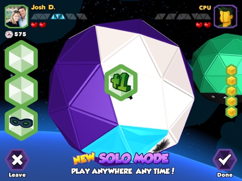 3. The players take turns flipping tiles on the sphere, trying to uncover their opponents hidden gems while avoiding mines!