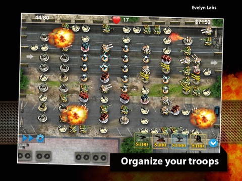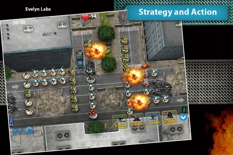 As the enemy attack comes in 30, 50 or 80 waves, use strategy and weaponry - guns, missiles, flame throwers and EMPs - to defend and protect the city. See the enemy explode in flames as they struggle to make their way through the maze of defense you set up in their path.