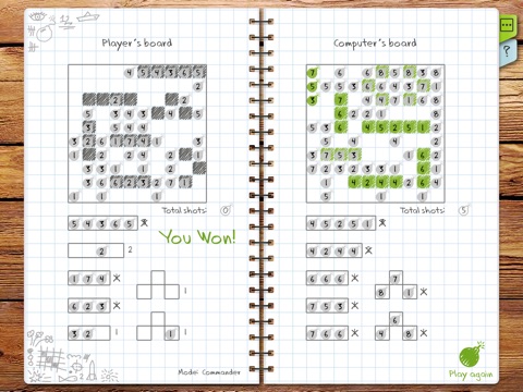 Strategy is the key word for this game. Instead having a single shot in a turn, your shot numbers in a turn depend on your healthy units number and count. At every turn end you will only know turn numbers in which the enemy ship is hit, without knowing the exact hit positions. You will need to find the hidden ships of your opponent as quickly as possible, because he is agile.
