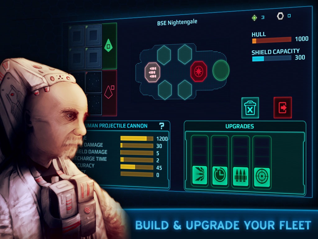 Ce jeu à du potentiel, mais jestime que la sortie à été précipitée; -linterface est hideuse, peu intuitive, et difficilement lisible (je suis sur iPhone 4s). -les combats sont lents, et laspect stratégique nest pas au rendez vous. -la traduction en Français est très approximative. -Pas de scénario. -les graphismes sont trop ternes, et les arrières plans ne sont pas très inspirés. Bref ne vous jetez pas dessus, même si votre soif inextinguible de Space-Opéra vous travaille, vous y perdrez 4€ et la foi dans les projets kick-starters.