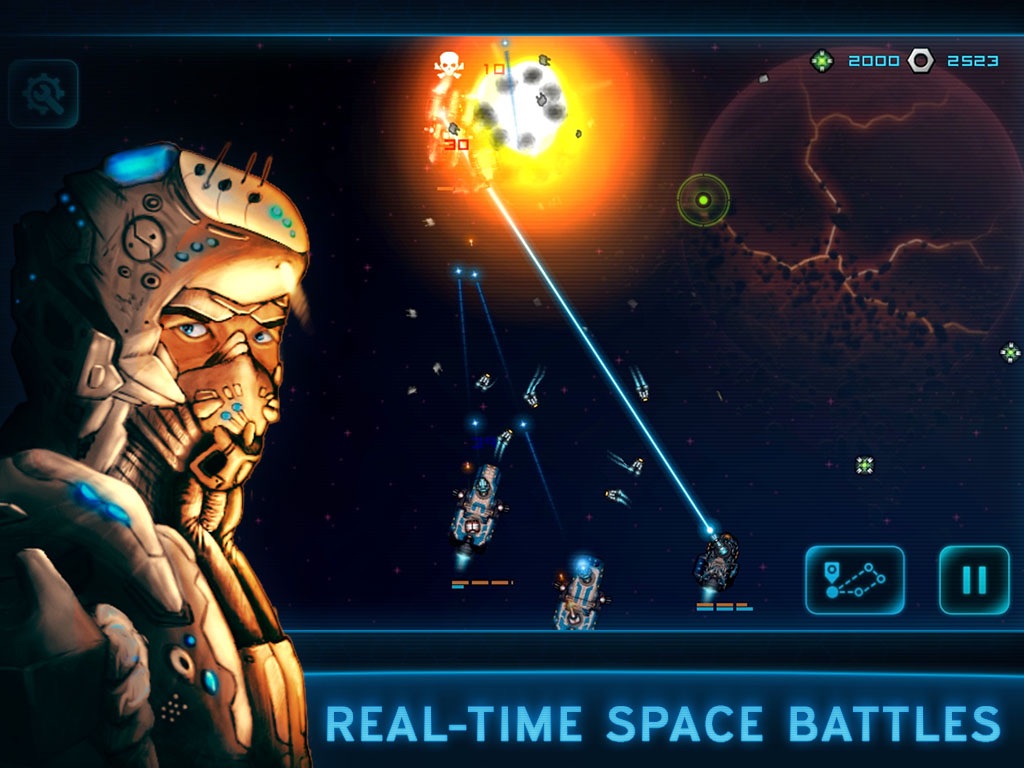 Gameplay bien pensé et rapide à comprendre. Des maps différentes et une grosse durée de jeu. Aussi bien pour les hard gamers que pour les causals avec 3 niveaux de difficulté. Graphismes sympas et bande son agréable. Cependant, il est dommage de ne pas pouvoir commander plus de 3 vaisseaux. Combats assez simplistes sans réelle stratégie. Pouvoir déplacer ces vaisseaux napporte pas daspect stratégique car mal utilisé. Le plus fort gagne! La possibilité déquiper / upgrader de nouvelles armes assez bien géré avec de nombreuses possibilités. Armes secondaires intéressantes. Bon jeu dans lensemble, je le recommande pour les fans de SF. Cera très bon après quelques majs ;)