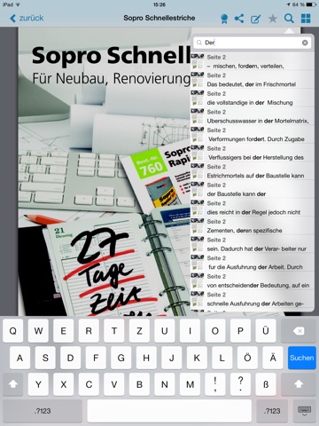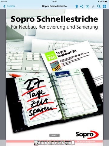 Die Kataloge können nach Herstellern oder Bau-Themen geordnet werden. Jeder Katalog kann durchblättert und nach Stichwörtern durchsucht werden. Ausgewählte Produktseiten lassen sich mit Notizen beschreiben und mit Lesezeichen (Bookmarks) versehen.