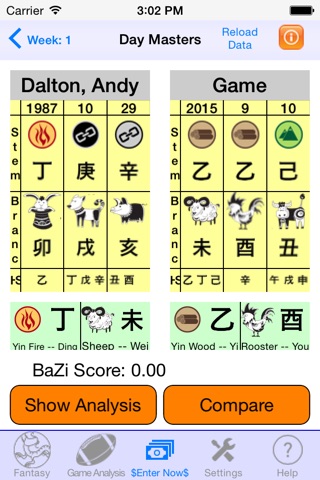 This is a full featured app for fantasy football with something you will not find elsewhere, Chinese astrological analysis (BaZi) of each player in each game.
