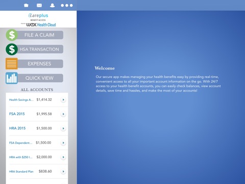Save time and hassles while making the most of your HSA, HRA, and FSA health benefit accounts by quickly checking your balances and details. Our secure app makes managing your health benefits easy through real-time access and intuitive navigation to all your important account information on the go! Powerful features of the app include: