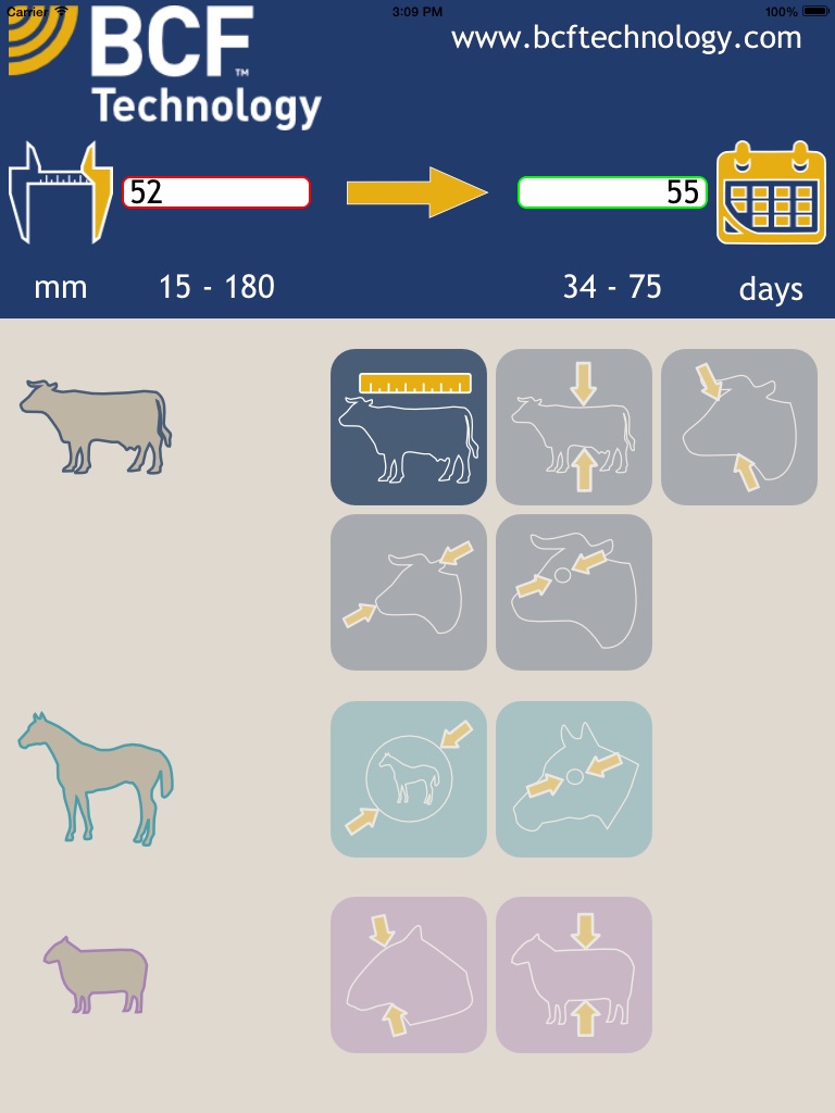 BCFs Animal Foetal Ageing app allows you to calculate the approximate foetal age of cattle, sheep and horses from standard measurements, the following measurements are supported.