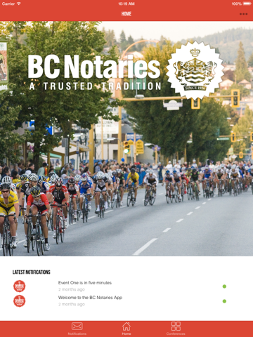 The BC Notary Members app allows Members from the Society of Notaries Public of BC stay informed instantly from the Society via push notifications. It also allows members to register for conferences and other society-provided courses, browse speaker bios, view conference schedules, view materials and receive event reminders before each event begins.