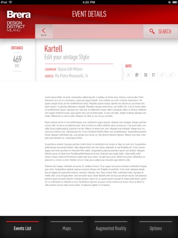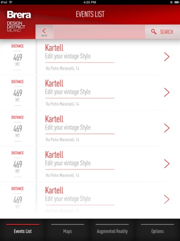 AUGMENTED MAPS: visualises the events in augmented reality, framing the space around you with the camera of your iPhone or iPad, to best orient you in the city.