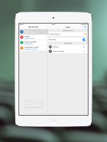 -The app allows the users to upload previously recorded audio broadcasts to Dropbox.