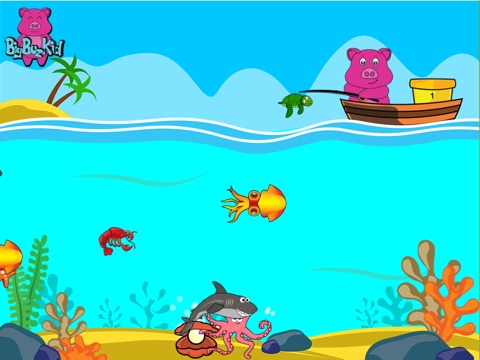 Bé câu bằng cách chạm vào các con vật đang bơi để câu lên, mỗi lần câu xong bé sẽ nghe và học đó là con vật gì bằng tiếng việt