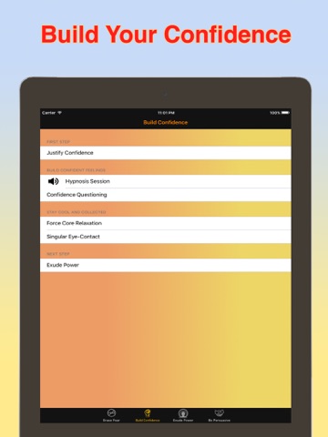 In step 2, "Build Confidence", you will build your self-esteem with psychological techniques and a guided meditation session designed for deep transformation.