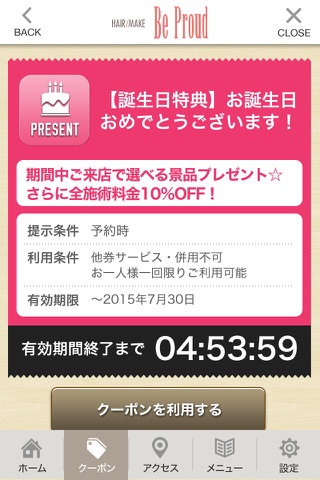 このアプリでは、Be Proudの色々な情報やアプリユーザー限定のお得なサービスが手に入ります!