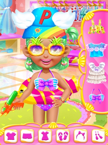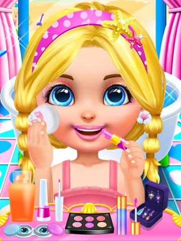 Then head to the makeup salon for a fun makeover. Apply eyeliner, mascara and lipstick in lots of different colors. Try on multiple looks and refresh if you change your mind! Just remember to keep the makeup in the lines or you’ll have to start again! Don’t forget a little blush of bronzer to make her appear sun-kissed!
