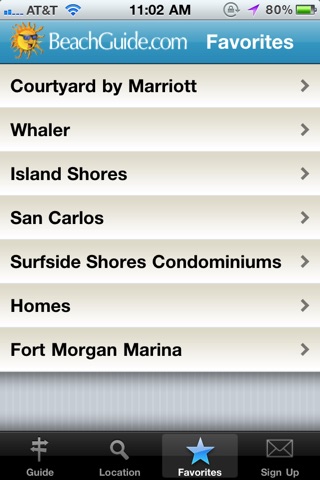 As you browse vacation rentals, the Beachguide App will give you options to sort by price, distance, or simply in alphabetical order. You can call the properties directly, email for availability, or click on Map to get a detailed driving route from your current location. Once youre at the beach, youll be able to easily find nearby restaurants, attractions, fishing and golf by using the interactive map feature to go straight to your destination, or sort by nearest places.