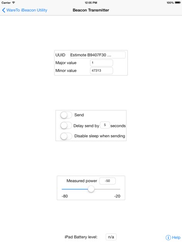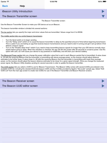 BeaconTest is a developer utility for testing devices and applications that use Apples new iBeacon API. It takes over where the sample App AirLocate leaves off. It allows you to create new UUIDs, share them between devices using AirDrop, messages, email, etc. It has an option to disable device sleep when transmitting beacon signals for testing. It includes too many useful features to list them all.