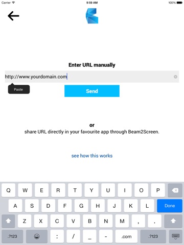 * open - or ask someone to open - http://beam2screen.com on the desktop PC, Smart TV, Notebook or Tablet where you want to send your Web content to