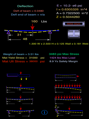 The BeamStress app was written with the busy Engineer in mind; the intuitive interface will be a unique experience compared tabulated desktop software menus; this interface has a natural flow that matches the thinking process involved in stress analyses method. As you interact with the BeamStress app you will notice your focus will stay on the design problem instead of searching thru menu picks...