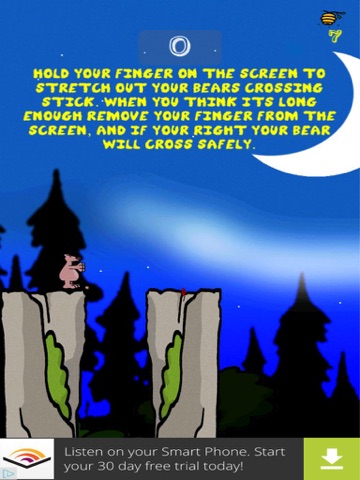 BEAR CROSSING is a catchy, woodsy endless runner game where comic bears must size up tree limbs to span canyons keeping them from dangling hives of delectable nectar.