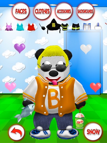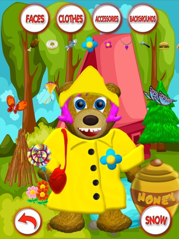 Save Bear Dress Up to the photo gallery or tap snow button to shower your Bear in gummy bears!