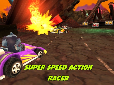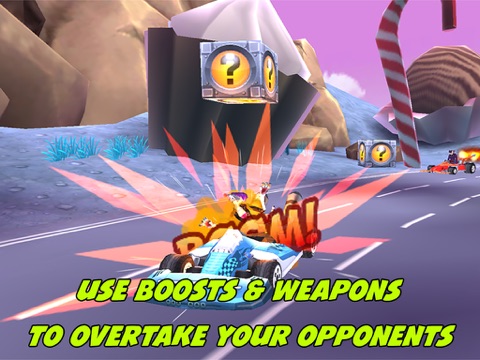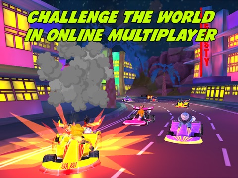Race and destroy the competition on 10 challenging race tracks. Show off your uniqueness with an assortment of stylish karts and skins to choose from. Change your weapons and stop your foes in their tracks.