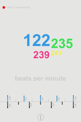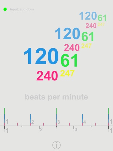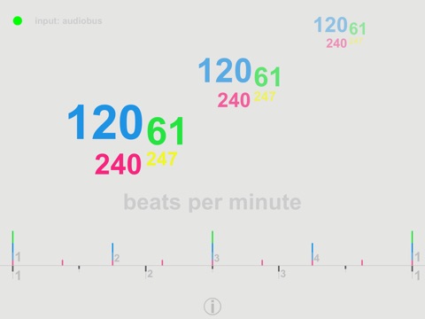 It displays the 4 most probable BPM results, their predecessors and a corresponding rhythm pattern. It comes with a great GUI: its color coding illustrates the relationship between detected BPM values and the rhythm pattern energies. Previous values flow away in a smooth animation.