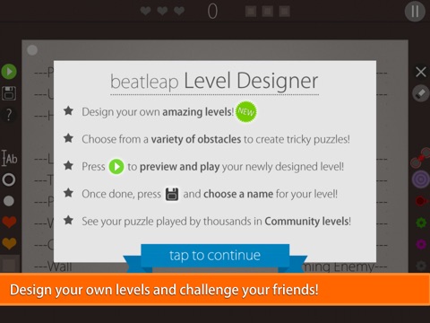 * UNLEASH your creativity and use the level designer to create, play and share your levels with everyone!